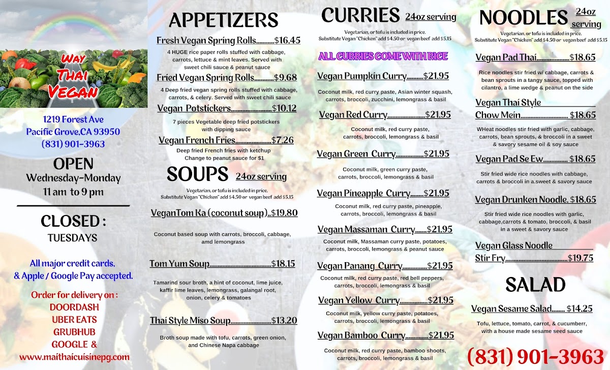 Vegan Red Curry -24oz portion -Choice of Vegan "Chicken", veggie only or with Tofu, savory coconut milk red curry sauce and a mix of bell peppers, cabbage, carrots, broccoli, zucchini and Thai sweet basil