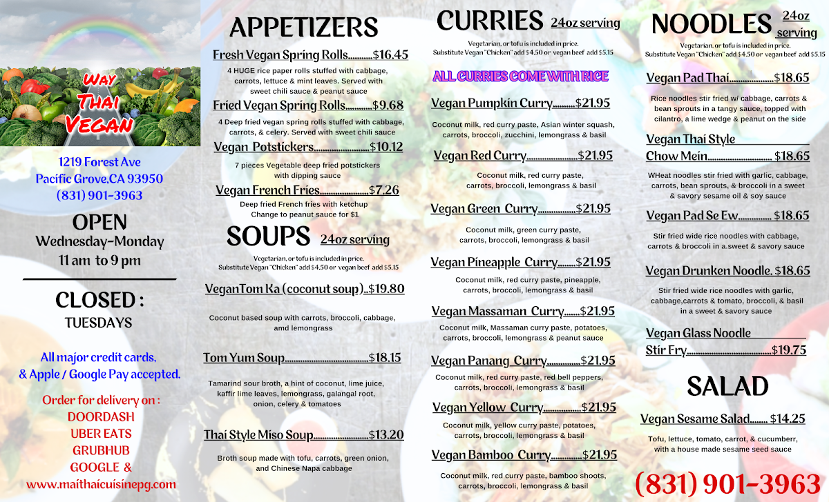 Vegan Bamboo Curry -24oz portion -Choice of Vegan "Chicken", veggie only or with Tofu, savory coconut milk, bamboo shoots, red curry sauce and a mix of bell peppers, cabbage, carrots, broccoli, zucchini and Thai sweet basil
