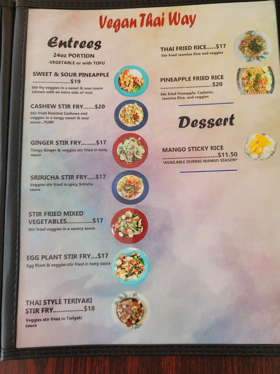 Vegan Pad Se Ew -24oz portion -Choice of veggie only or with Tofu, wide rice fresh noodles stir fried in a mix of cabbage, carrots, broccoli, and zucchini in a sweet and savory soy sauce topped with cilantro